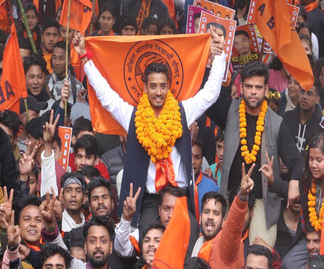 अभाविप के प्रत्याशियों की रैली सुभाष रोड के लार्ड वेंकटेश्वर वेडिंग प्वाइंट से डीएवी करनपुर तक निकाली गई। रैली में संगठन के समर्थक छात्र-छात्राओं ने अबीर-गुलाल उड़ाया और अध्यक्ष पद के दावेदार दयाल बिष्ट जिंदाबाद के नारे लगाए।
