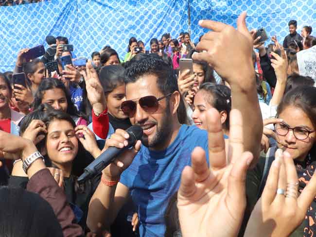 जैसे ही विक्की चौहान ने मंच संभाला युवाओं ने जोरदार तालियों से उनका स्वागत किया। इस दौरान उन्होंने अपने प्रसिद्ध हिमाचली लोक गीत झुमके-झुमके, तेरे कानों रे झुमके छन-छन कर दे..., गपशप लाणी..., नीरू चल घूमदी, घूमदी शिमले बाजार...आदि गीतों पर प्रस्तुति देकर छात्रों को खूब झुमाया।