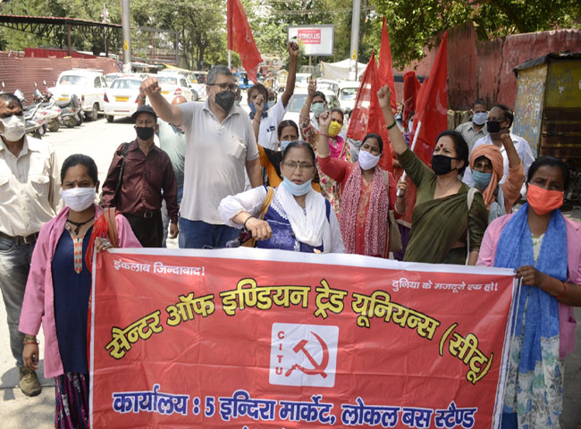 रेलवे के निजीकरण के विरोध में सेंटर ऑफ इंडियन ट्रेड यूनियंस (सीटू) की उत्तराखंड इकाई ने रेलवे स्टेशन पर प्रदर्शन किया। उन्होंने स्टेशन निदेशक गणेश चंद ठाकुर के माध्यम से प्रधानमंत्री को ज्ञापन भेजकर निजीकरण के निर्णय को वापस लेने की मांग की। सीटू कार्यकर्ताओं ने रेलवे स्टेशन परिसर के सामने शारीरिक दूरी का पालन करते हुए प्रदर्शन किया। इस मौके पर सीटू के प्रदेश कार्यकारी अध्यक्ष राजेंद्र नेगी ने कहा कि रेलवे देश के लाखों लोगों को रोजगार उपलब्ध कराती है। रेलवे को केंद्र सरकार निजी हाथों में देना चाहती है, यह देशहित में नहीं है। इसके साथ ही उन्होंने रेलवे में खाली पदों पर भर्ती शुरू करने की भी मांग की। इस मौके पर सचिव लेखराज, रामसिंह भंडारी, रविंद्र नौडियाल आदि मौजूद रहे।