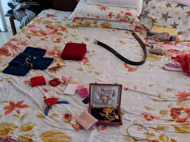 दादाजी जब आठ दिसंबर को घर की देखभाल करने पहुंचे तो ताला खोलने के बाद भी दरवाजा नहीं खुला। इस पर वह पड़ोसियों को साथ लेकर घर के पीछे गए तो देखा कि पीछे का दरवाजा खुला हुआ है और पूरे घर में सामान बिखरा पड़ा है। आलमारी के लॉकर टूटे पड़े हैं और बेड पर आर्टिफिशियल ज्वेलरी बिखरी पड़ी है। असली ज्वेलरी और नकदी घर से गायब थी।