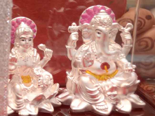 राजपुर रोड स्थित कांशी ज्वेलर्स स्टोर के मोहित मैसोन ने बताया कि इस बार इलेक्ट्रोप्लेटिक प्रोसेस से बनी सिल्वर की मूर्तियां खास है। यह सभी मूर्तियां एम्ब्रोड ब्रांड की हैं। जिसकी कीमत चार हजार रुपये से लेकर 20 हजार 143 रुपये तक है। यह मूर्तियां हैवी वेट वाली हैं। इसके अलावा लक्ष्मी और गणेश की 18 ग्राम से एक किलो तक की चांदी से बनाई मूर्तियां भी मार्केट में उपलब्ध हैं। इसकी कीमत बारह सौ रुपये से शुरू होकर 56 हजार रुपये तक है। वही मार्केट में हमेशा की तरह इस बार भी सोने और चांदी के सिक्के और अन्य सिल्वर आइटम उपलब्ध हैं।