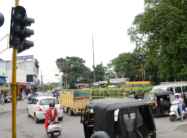 -प्रिंस चौक पर हरिद्वार रोड से गांधी रोड की तरफ जाते हुए