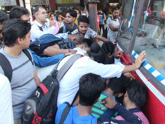 इस पर रोडवेज ने साधारण बसों के टिकट ऑनलाइन बुक करने शुरू कर दिए, लेकिन यह टिकट भी फुल हो गए। यहां से रवाना हुई सभी ट्रेनों की वेटिंग लंबी होती जा रही है। रेल प्रबंधन की ओर से जनरल टिकटों के लिए स्टेशन पर अतिरिक्त काउंटर लगाए गए हैं। ट्रेनों की संख्या कम है एवं रवाना होने वाले यात्रियों की संख्या हजारों में।