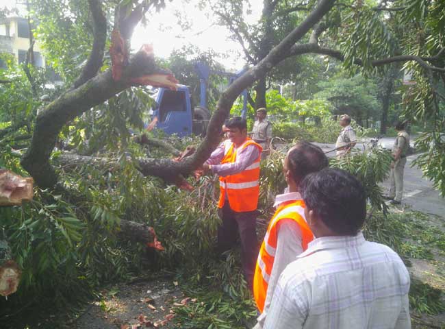 सड़क पर गिरा पेड़, बिजली आपूर्ति ठप, यातायात प्रभावित
