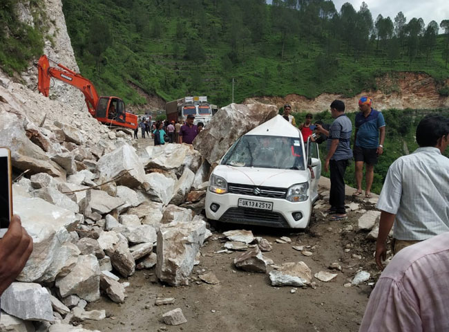 पहाड़ी से गिरे बोल्डर की चपेट में आया हरियाणा के कांवड़ यात्रियों का वाहन, चार की मौत