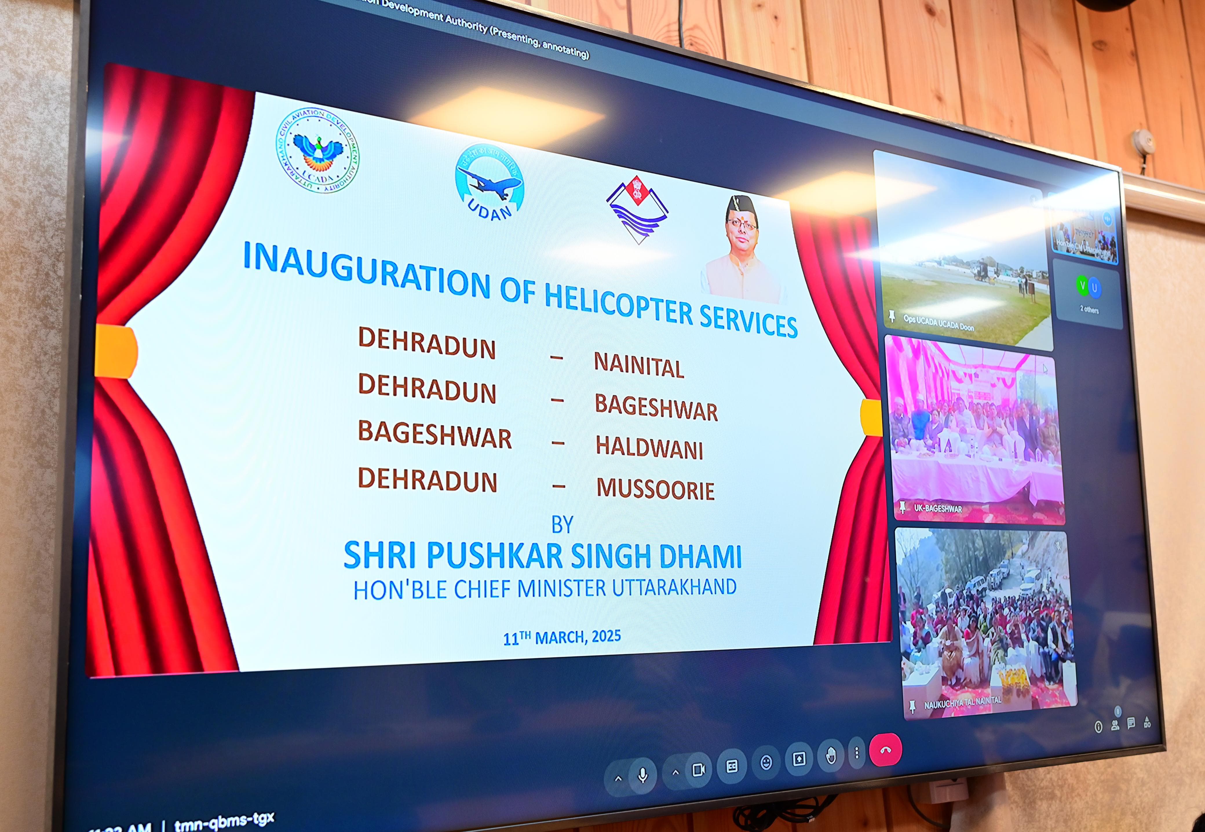 जागरण संवाददाता, देहरादून। मुख्यमंत्री पुष्कर सिंह धामी ने मंगलवार को चार हेली सेवाओं का हरी झंडी दिखाकर शुभारंभ किया है। इन सेवाओं के जरिए जरिए देहरादून से नैनीताल, बागेश्वर और मसूरी और हल्द्वानी से बागेश्वर का हवाई सम्पर्क स्थापित हो गया है।