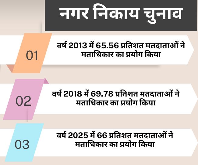 वर्ष 2018 में यह बढ़कर 69.78 प्रतिशत तक पहुंच गया। ऐसे में माना जा रहा था कि इस बार निकायों में मतदान 75 प्रतिशत का आंकड़ा छू सकता है। मतदान प्रतिशत बढ़ाने के दृष्टिगत राज्य निर्वाचन आयोग से लेकर राजनीतिक दलों ने भी अपनी-अपनी ओर से पूरा जोर लगाया था।