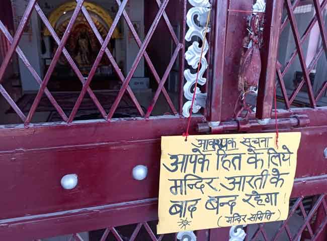 मंदिर के महंत रमन प्रसाद गोस्वामी ने बताया कि कोरोना के चलते श्रद्धालुओं के लिए मंदिर के कपाट 31 मार्च तक बंद रखे हैं। उन्होंने बताया कि श्रद्धालुओं से अपील की जा रही है कि घर पर ही बैठकर पूजा करें। श्रद्धालुओं के मंदिर में प्रवेश निषेध के लिए मंदिर गेट पर बैनर चस्पा कर दिया है। नवरात्र में भी सिर्फ मंदिर के पुजारी नित्य पूजा करेंगे। संत-महात्माओं का कहना है कि ‘मन चंगा तो कठौती में गंगा’ के भाव को चरितार्थ करते हुए घरों में रहकर स्वजनों के साथ व्रत का पालन करें, भजन-पूजन करें और परिवार, समाज एवं राष्ट्र की खुशहाली की कामना करें।