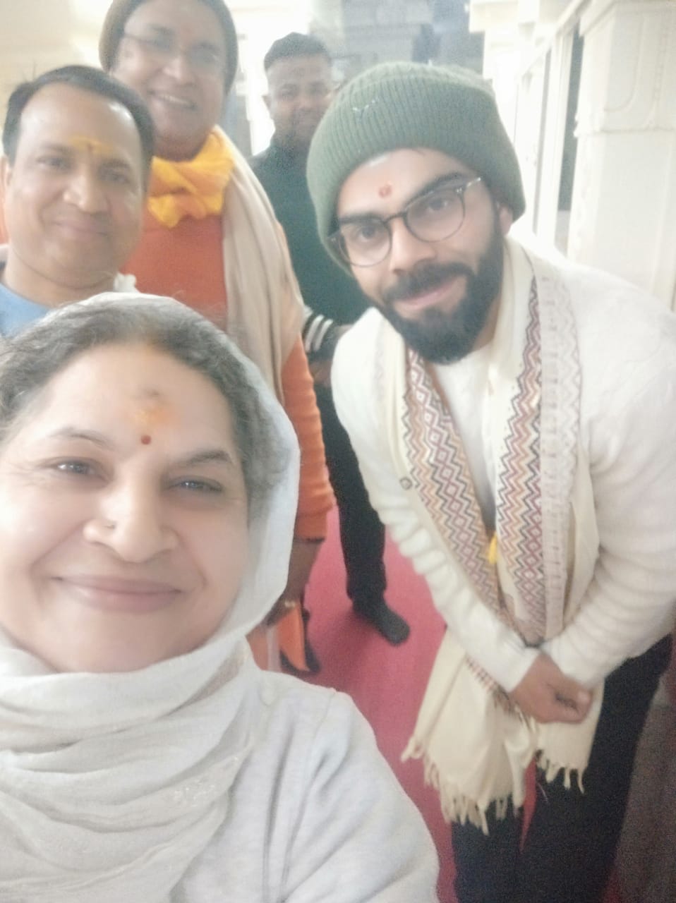 आश्रम परिसर में स्थित भगवान शंकर के मंदिर में उन्होंने पूजा-अर्चना की आश्रम आगमन के बाद विराट, अनुष्का और उनकी मां सरोज ने दयानंद आश्रम के अध्यक्ष स्वामी साक्षातकृता नंद महाराज से आशीर्वाद लिया। रात को वह यहीं आश्रम के ही प्रवास करेंगे। शाम करीब साढ़े सात बजे उन्होंने आश्रम की रसोई में बना भोजन किया। उन्होंने अपने ही कक्ष में रोटी, सब्जी, खिचड़ी, कढ़ी खाई ।