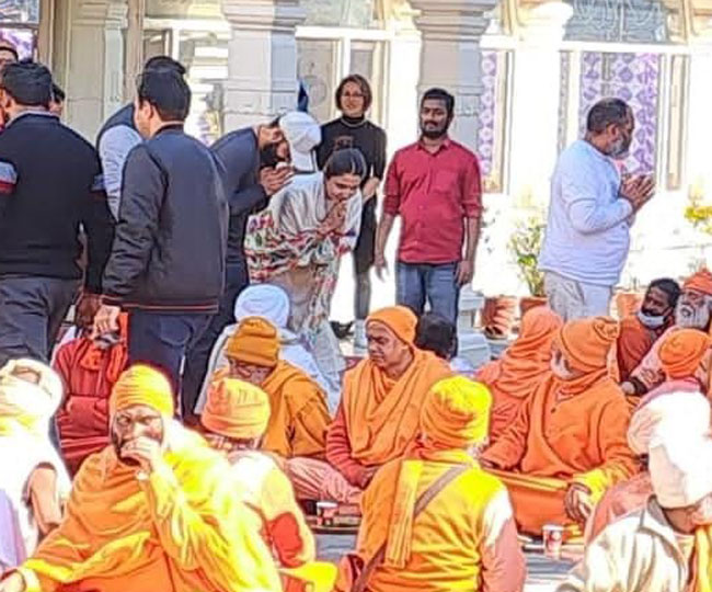 क्रिकेट खिलाड़ी विराट कोहली और अनुष्कार मंगलवार को स्वामी दयाराम आश्रम में संतों को दिए गए भंडारे में शामिल हुए। इस दौरान विराट कोहली ने पत्नी अभिनेत्री अनुष्का शर्मा के साथ पंक्ति में बैठे संतों के बीच जाकर उनका आशीर्वाद लिया।