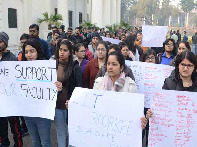 भारतीय प्रौद्योगिकी संस्थान (आइआइटी) रुड़की की एक अनुसूचित जाति की शोधार्थी के यौन उत्पीड़न और उसे जातिसूचक शब्द कहने के आरोपित संस्थान के प्रोफेसरों के समर्थन में फैकल्टी और छात्र मेन बिल्डिंग में एकत्रित हुए और काली पट्टी बांधकर शांतिपूर्वक रैली निकाली। साथ ही, शोधार्थी की ओर से प्रोफेसरों पर लगाए गए आरोपों को गलत ठहराया।