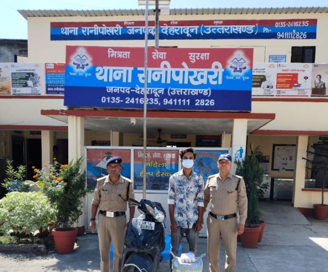 पुलिस ने एक युवक को 150 टेट्रा पैक देशी शराब के साथ गिरफ्तार किया है। रानीपोखरी थानाध्यक्ष विकेंद्र कुमार ने बताया कि रानीपोखरी थाना गेट के पास पुलिस की ओर से चेकिंग अभियान चलाया जा रहा था। इस दौरान स्कूटी सवार एक युवक को रोककर उसकी तलाशी ली गई तो स्कूटी से डेढ़ सौ टेट्रा पैक देशी शराब माल्टा ब्रांड बरामद हुई। शराब बिक्री व परिवहन करने के आरोप में आरोपित के विरुद्ध मुकदमा दर्ज कर स्कूटी वाहन सीज कर दिया है। आरोपित की पहचान रवि चौहान उर्फ प्रधान उम्र 25 वर्ष निवासी ग्राम श्यामपुर कांगड़ी थाना जनपद हरिद्वार के रूप में हुई है।