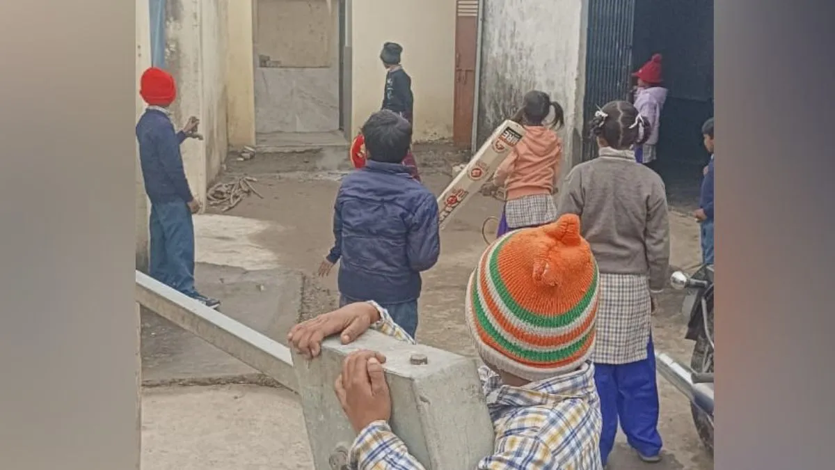 मैदान ना होने के कारण बच्चों को इस तरह से छोटे स्थान पर खेलना पड़ रहा है।