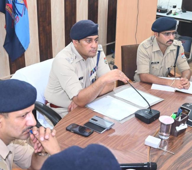 बैठक लेते एसएसपी प्रमेंद्र डोबाल: जागरण