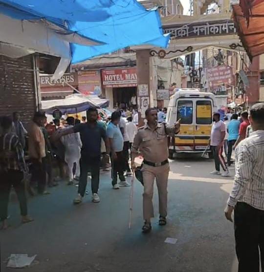 श्रद्धालुओं से खाली कराया गया मंदिर परिसर। जागरण