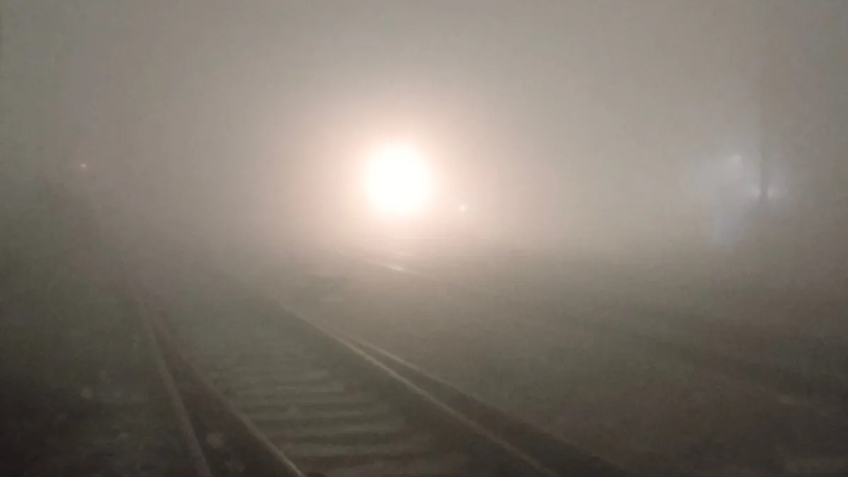 कोहरे के बीच धीमी गति से लक्सर आती दून एक्सप्रेस