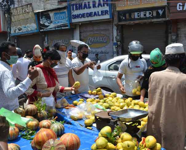 फल विक्रेता कर रहे शारीरिक दूरी का उल्लंघन