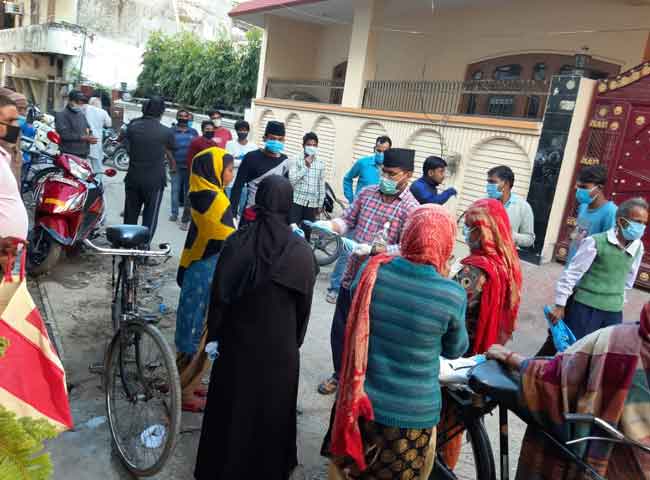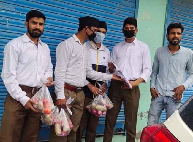 लॉक डाउन में सेवा कार्य को उतरा संघ, लोगों को बांट रहे भोजन, मॉस्क और सेनेटाइजर