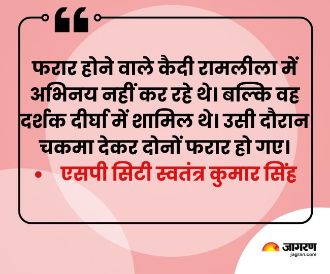 जागरण संवाददाता, हरिद्वार। रोशनाबाद स्थित जिला कारागार में रामलीला मंचन के दौरान दो कैदी दीवार कूदकर फरार हो गए। फरार हुए कैदियों में एक हत्या के मामले में आजीवन कारावास की सजा काट रहा था। जबकि दूसरा अपहरण के मामले में विचाराधीन कैदी है। जेल से दो कैदियों के फरार होने से प्रशासन में हड़कंप मचा हुआ है। पूरे जिले में नाकाबंदी कर पुलिस ने कैदियों की तलाश की।