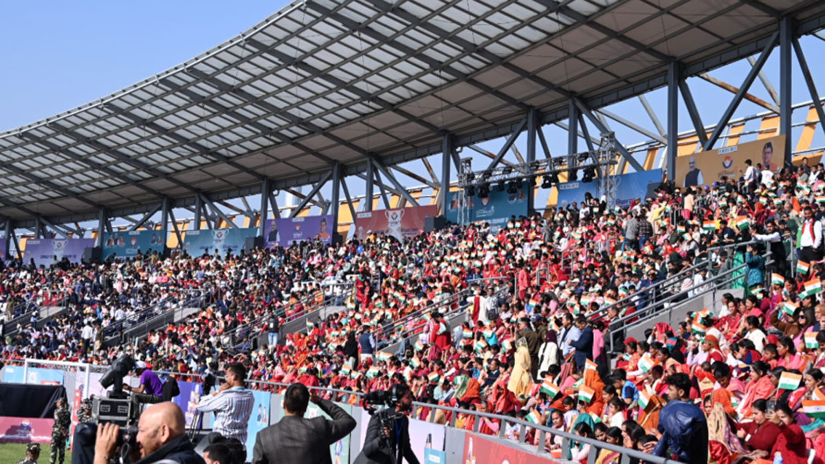 इस दौरान स्टेडियम में जबरदस्त उत्साह दिखाई दिया। सीएम ने अमित शाह को शुभंकर मौली भेंट किया। दर्शकों से खचाखच भरे आयोजन स्थल में पहाड़ की लोक संस्कृति, परंपरा, संस्कार और गीत-संगीत का सुंदर संगम देखने को मिल रहा है।