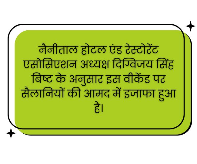 नौका विहार करने वाले सैलानी भी नजर आए। नैनीताल होटल एंड रेस्टोरेंट एसोसिएशन अध्यक्ष दिग्विजय सिंह बिष्ट के अनुसार इस वीकेंड पर सैलानियों की आमद में इजाफा हुआ है। उम्मीद है कि शीतावकाश के बाद आवासीय विद्यालयों का खुलना सोमवार से शुरू हो जाएगा। जिसके चलते पर्यटकों की आमद निरंतर वृद्धि जारी रहेगी।