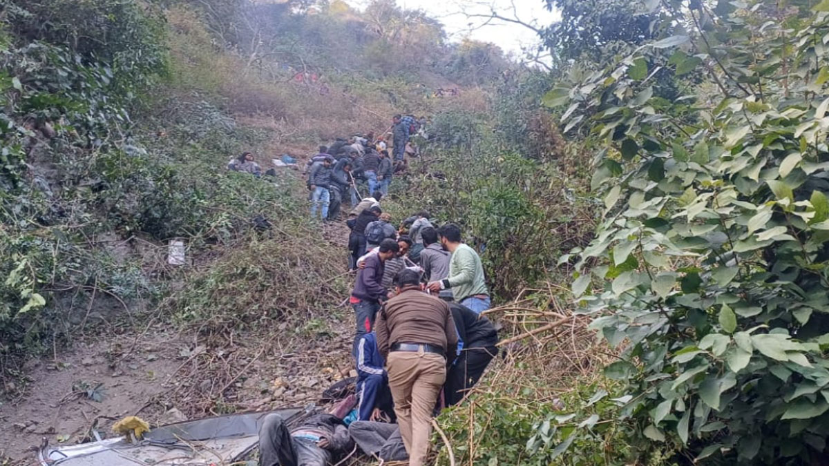 Bhimtal Bus Accident Photos: खाई में बस गिरते ही मच गई चीख-पुकार, 30 यात्री थे सवार... बच्चा समेत चार की मौत