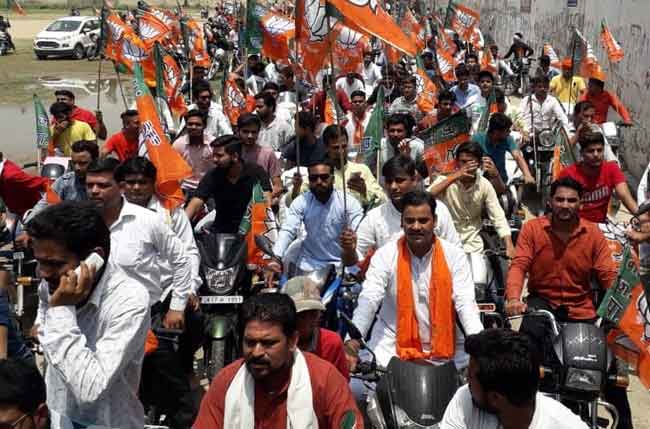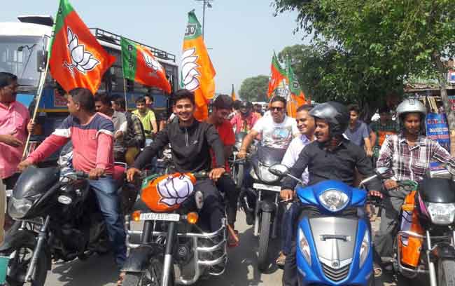 मोदी सरकार के चार साल पूरे होने पर भाजयुमो ने निकाली बाइक रैली