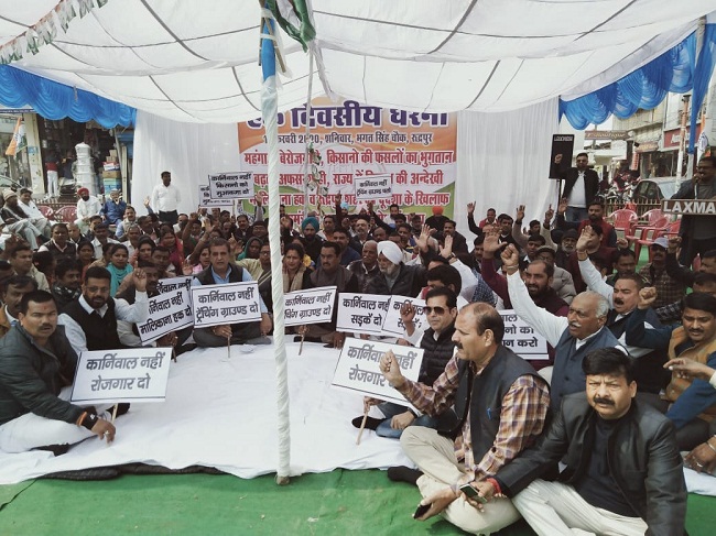 मुख्यमंत्री त्रिवेंद्र रावत के रुद्रपुर आगमन के विरोध में कांग्रेस कार्यकर्ताओं ने जिला मुख्यालय के भगत सिंह चौक पर धरना शुरू कर दिया है। पूर्व स्वास्थ्य मंत्री तिलकराज बेहड़ की अगुवाई में धरने पर जमे कार्यकर्ताओं का कहना है कि प्रदेश में बेरोजगारी, भ्रष्टाचार और महंगाई चरम पर है। सीएम जनता को बरगलाने का प्रयास कर रहे हैं। ऐसे में मुख्यमंत्री त्रिवेंद्र रावत का आगमन का विरोध किया जा रहा है।