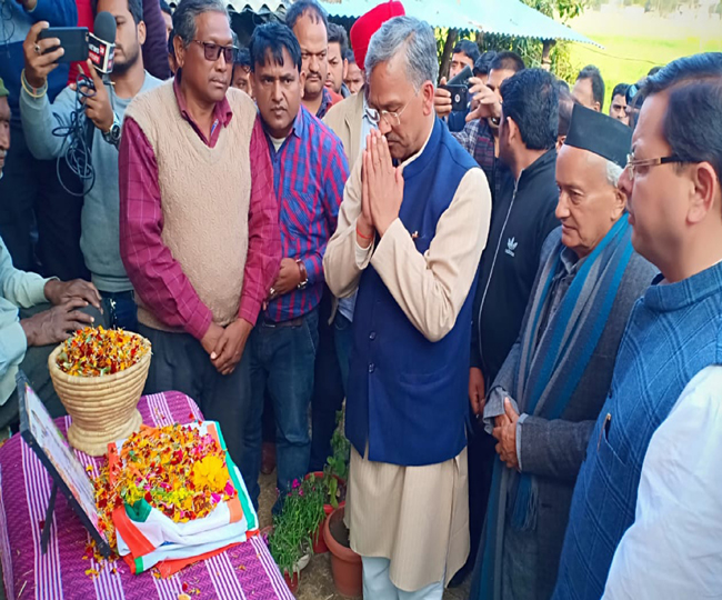 सायं मुख्यमंत्री त्रिवेंद्र सिंह रावत शहीद बीरेंद्र के घर पहुंचे। पिता को सांत्वना देते हुए उन्हें शहीद के चित्र पर पुष्प अर्पित किए। सीएम ने कहा कि शहीद जवानों के परिजन खुद को अकेला न समझें। भाजपा सरकार व पूरा देश उनके साथ खड़ा है। शहीदों के परिजनों को सरकार की घोषणा के अनुरूप सभी सुविधाएं उपलब्ध कराने के साथ ही हर संभव मदद की जाएगी। परिवार के एक सदस्य को नौकरी का वादा पूरा किया जाएगा। .jpg)