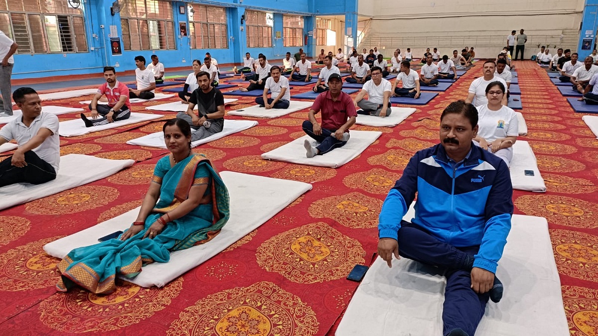 हल्द्वानी मिनी स्टेडियम में आयुष विभाग द्वारा विश्व योगा दिवस पर लोगों के साथ योग करते मेयर जोगेंद्र सिंह रौतेला।