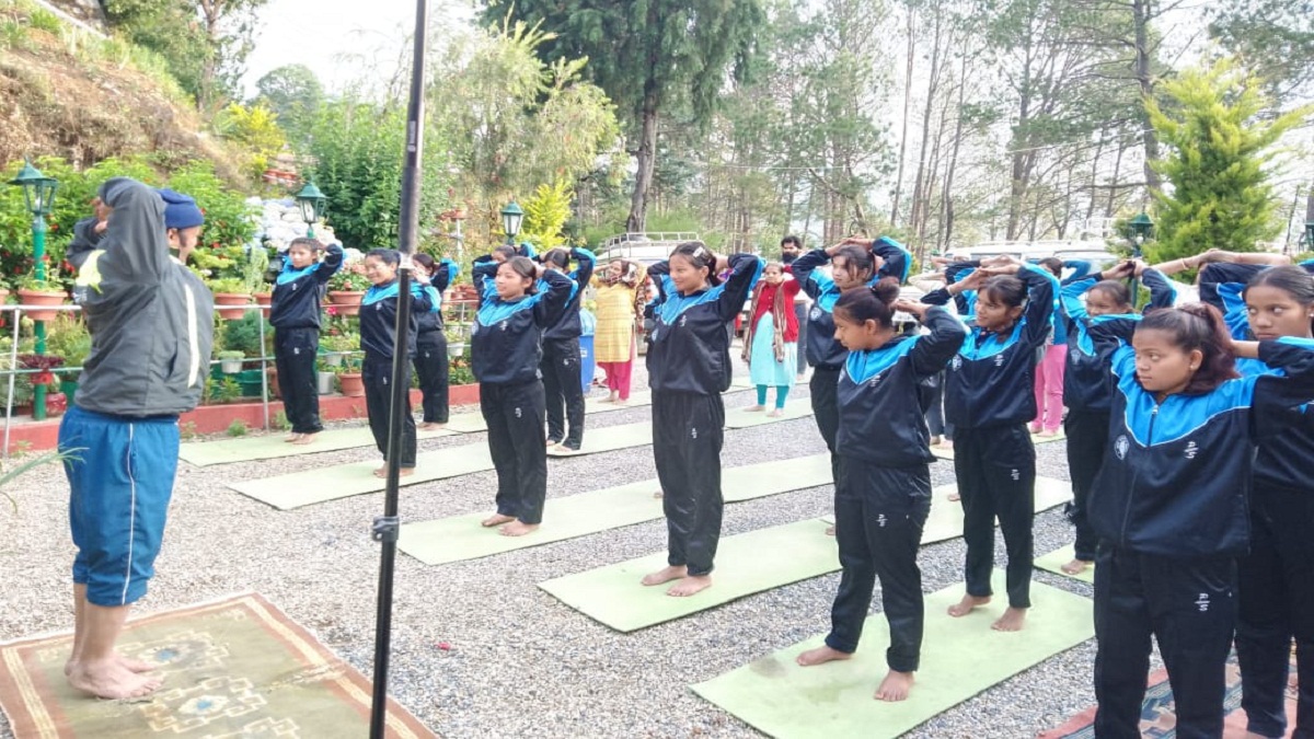 हल्द्वानी एमबी इंटर कॉलेज में योगाभ्यास करते एनसीसी कैडेट