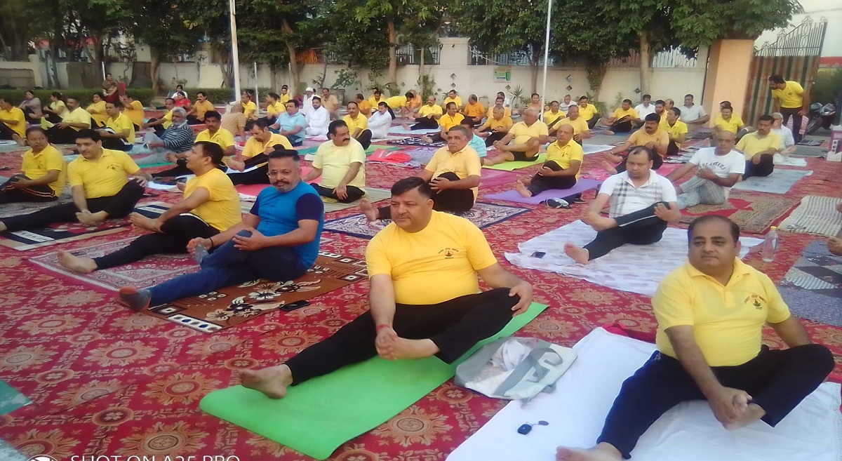 अंतर्राष्ट्रीय योग दिवस पर दैनिक जागरण द्वारा आयोजित कार्यक्रम में योग करते लोग