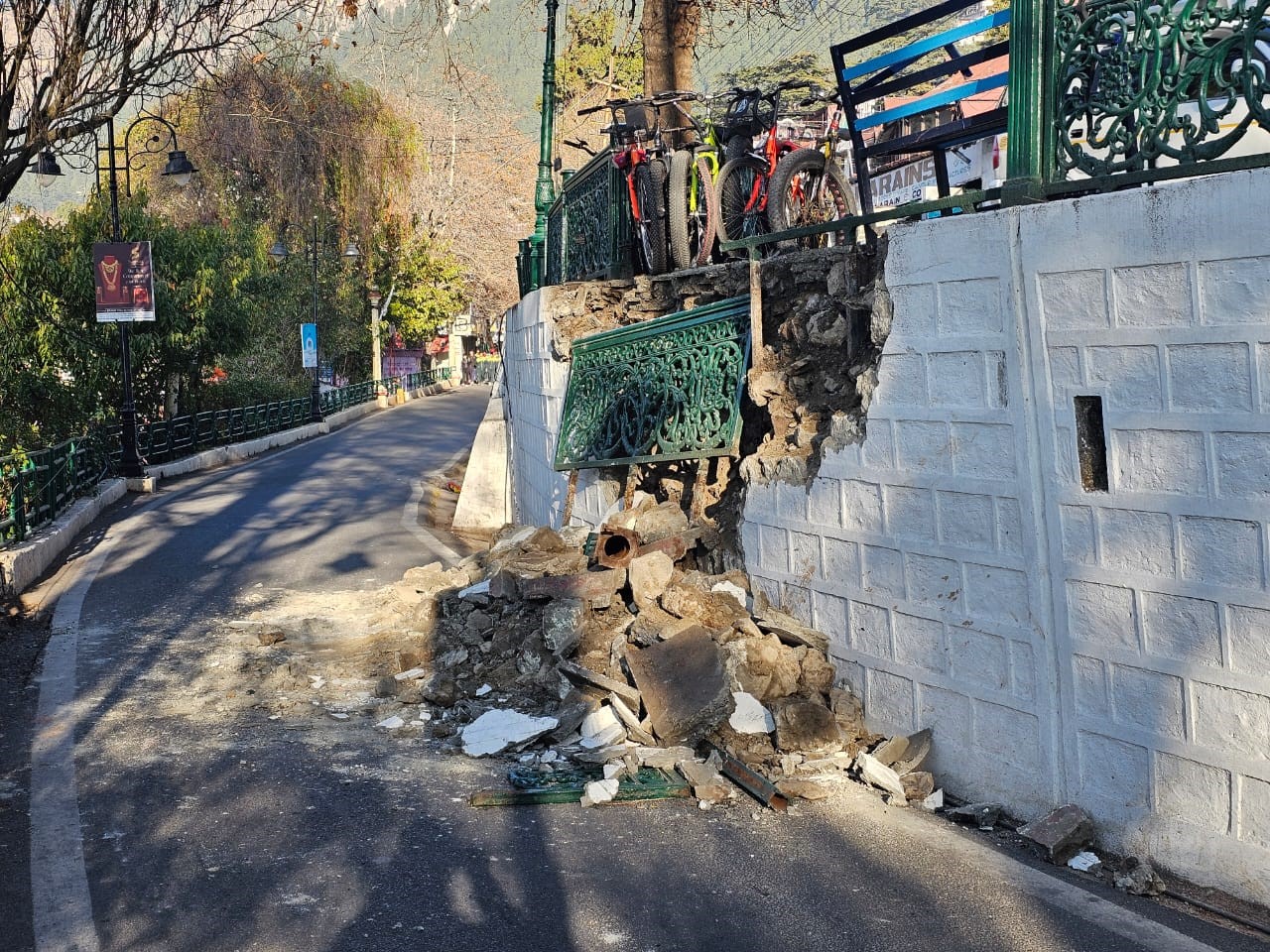 प्रत्यक्षदर्शियों के अनुसार, शुक्रवार सुबह माल रोड में ग्रांड होटल के पास अपर माल रोड भरभराकर रेलिंग सहित लोअर माल रोड में जा गिरी। अचानक हुए इस घटना से लोग सहम से गये। जिस स्थान और रेलिंग टूटी है उस स्थान पर माल रोड में अक्सर सीवर लाइन ओवर फ्लो रहती है। यही नहीं अपर माल रोड उस स्थान पर धंसी भी थी। रेलिंग टेड़ी हो गई थी।