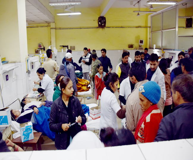 ओखलकांडा के राजकीय हाइस्कूल ककोड़गाजा में सोमवार को 147 बच्चों ने दोपहर भोजन के बाद आयरन फोलिक एसिड की टेबलेट खाई। दवा खाने के बाद बच्चे एक के बाद एक बीमार पड़ने लगे। कई बच्चों को बेहोशी छा गई। घायल बच्चों को निजी वाहनों से हल्द्वानी के लिए रवाना किया गया। वहीं, कुछ अभिभावकों ने आरोप लगाया कि स्कूल प्रशासन ने स्वास्थ्य कर्मचारी की निगरानी के बगैर बच्चों को दवा खिला दी। इधर, देर शाम आठ बजे बाद बच्चे एसटीएच पहुंचे। रात नौ बजे तक 41 बच्चे अस्पताल पहुंच गए थे। विधायक खुद ही मरीजों को भर्ती कराने में जुटे रहे। डॉक्टरों के अनुसार बच्चों की हालत खतरे से बाहर है। सीईओ केके गुप्ता, डीइओ माध्यमिक एचएल गौतम ने अस्पताल पहुंचकर बच्चों की स्थिति देखी। आधे रास्ते में मिली एंबुलेंस 108 एंबुलेंस भी समय पर नहीं पहुंची। परिजन बच्चों को पिकअप में ही लेकर आ गए। रौसिंल के पास एंबुलेंस से बच्चे एसटीएच पहुंचे।