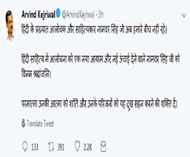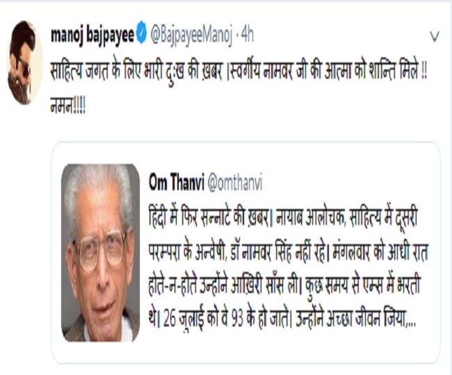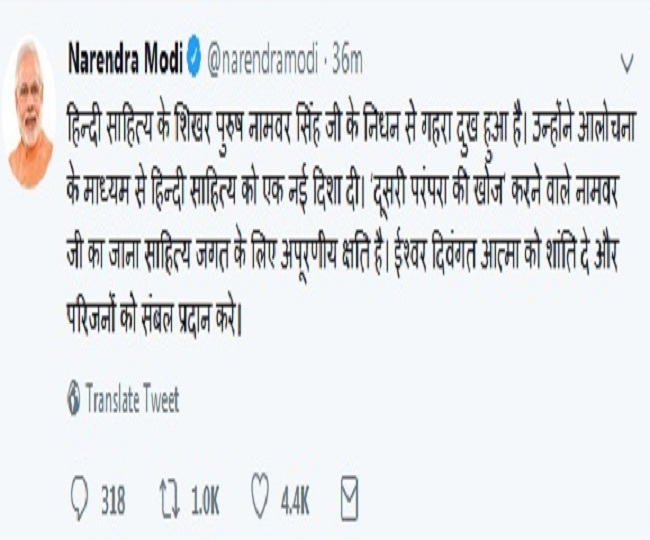 नामवर सिंह को पीएम मोदी ने ट्वीट कर दी श्रद्धांजलि, सोशल मीडिया पर शोक की लहर