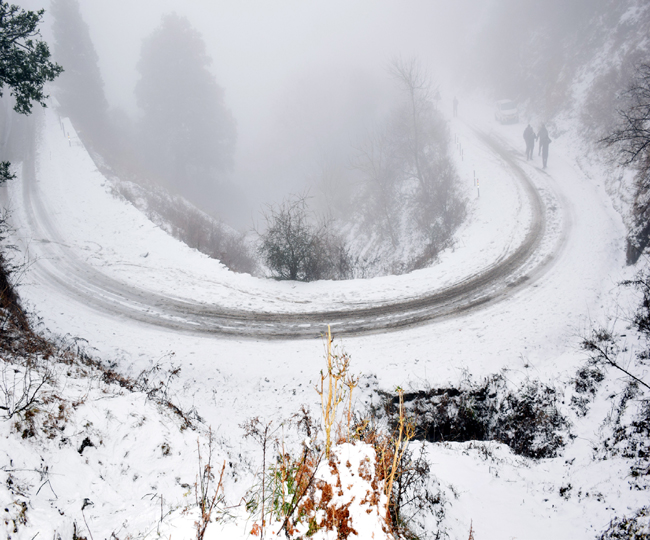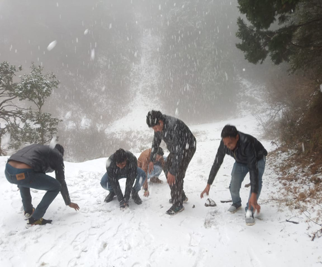 गुरुवार आधी रात के बाद एकाएक मौसम बिगड़ा और ऊंचाई वाले इलाकों में बर्फबारी शुरू हो गई। सात नंबर, टिफिनटॉप, बारापत्थर, किलबरी रोड, हिमालय दर्शन, स्नोव्यू में बर्फ की सफेद चादर बिछ गई। हिमालय दर्शन में डेढ़ इंच तक बर्फ गिरी है। दोपहर 12 बजे के करीब शहर में भी बर्फबारी शुरू हो गई जो आधे घंटे बाद थम गई थी। अपराह्नï पौने तीन बजे फिर बर्फबारी आरंभ हो गई, जो दस मिनट बाद थम गई। .jpg)