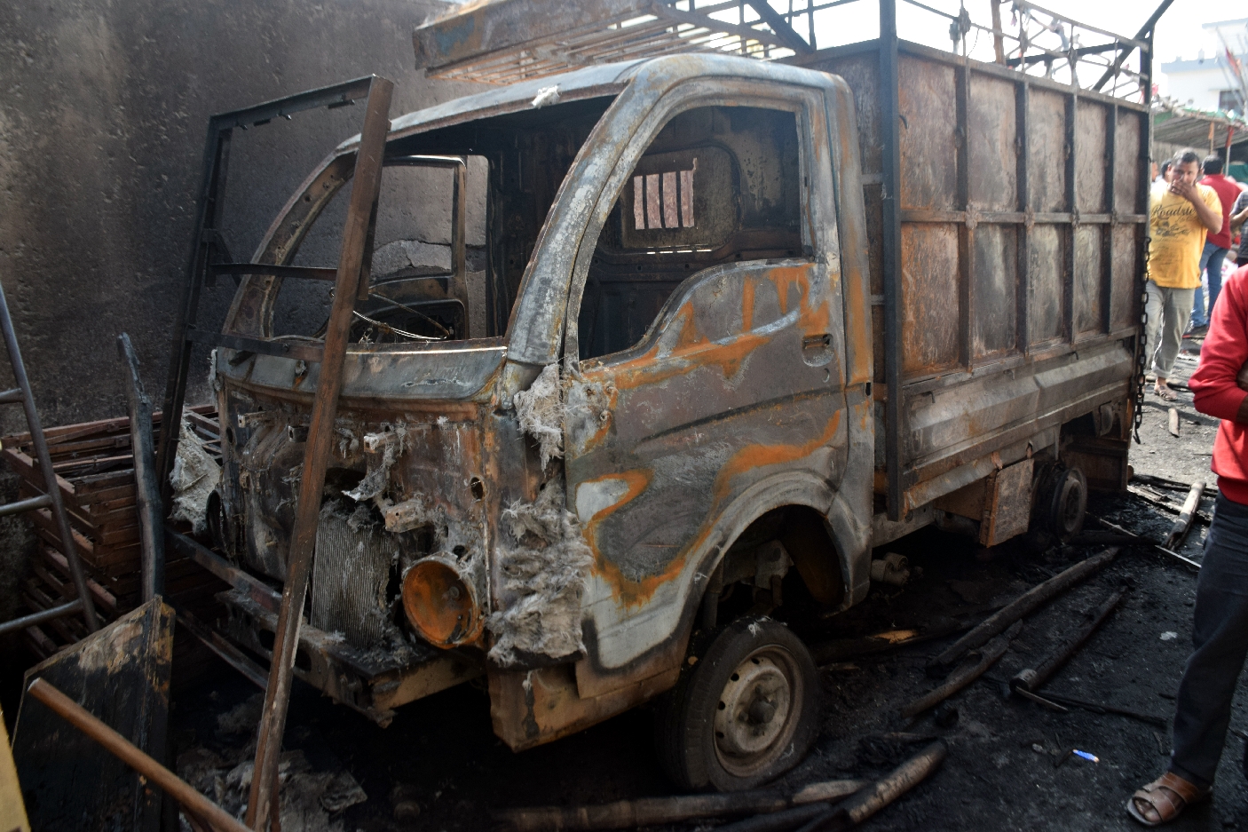 40-50 लाख का नुकसान, दो छोटे हाथी वाहन भी जले