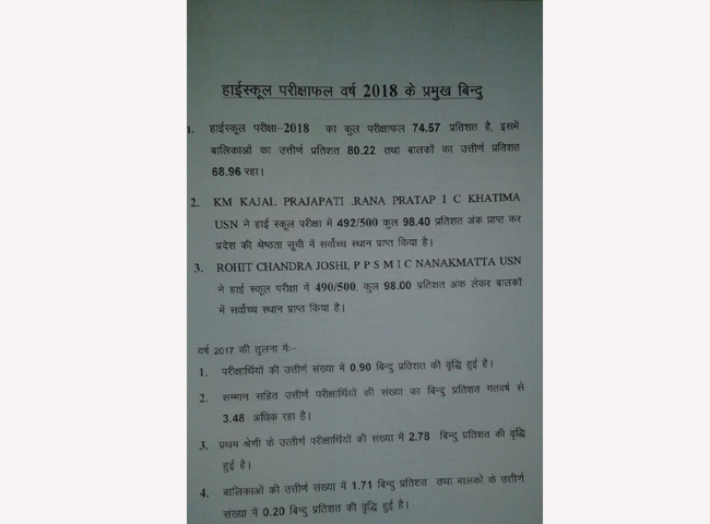 माध्यमिक शिक्षा निदेशक आरके कुंवर ने बोर्ड कार्यालय में परीक्षाफल घोषित करते हुए कहा कि हाईस्कूल का परिणाम 74.57 प्रतशत व इंटरमीडिएट का 78.97 फीसद रहा।