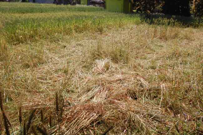 सुबह करीब तीन बजे हाथी उनके खेत में घुसा और गेंहू की फसल को रौंदकर बर्बाद कर दिया। टॉर्च की लाइट जलाने के बाद हाथी खेत से निकलकर पड़ोस में रहने वाले कमल ङ्क्षसह के बगीचे में घुस गया। जहां उसने तीन बीघा में लगी गेंहू की फसल को रौंदा और बगीचे में लगे आम के पेड़ों की शाखाओं को तोड़ दिया।