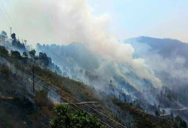 बीते चार दिन से पौड़ी शहर के आसपास का जंगल आग की चपेट में है। वन विभाग की टीम आग पर काबू पाने में जुटी हुई है। शहर से करीब एक किलोमीटर दूर जंगल से सटे इलाके में केंद्रीय विद्यालय, गढ़वाल के मंडलायुक्त का शिविर कार्यालय और सरकारी आवास हैं।