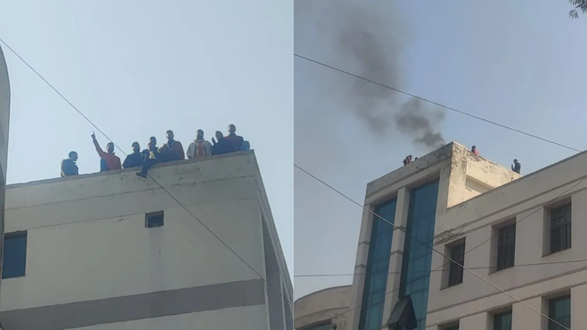 गढ़वाल विश्वविद्यालय में डीएसडब्ल्यू भवन की छत पर चढ़े आधा दर्जन से अधिक छात्र, कुलपति का फूंका पुतला