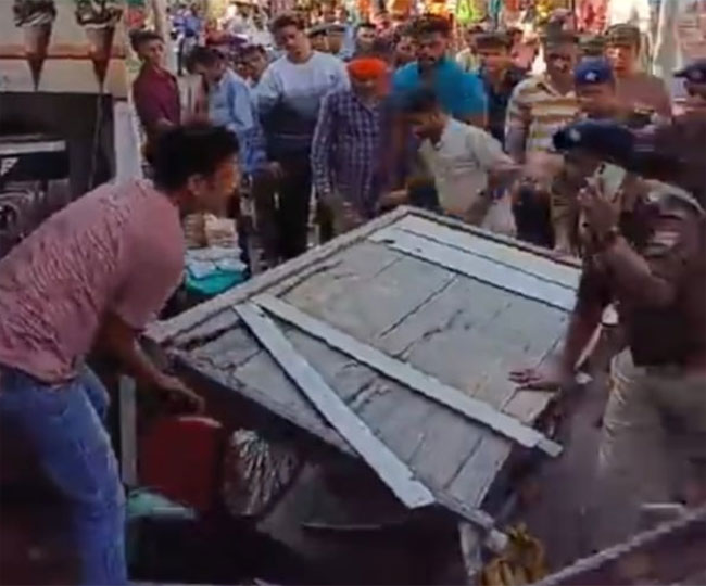 कीर्तिनगर बाजार में मुस्लिम समुदाय के कारोबारियों की फल और सब्जी की ठेलियां पलट दीं। दुकानों के होर्डिंग उखाड़ दिए। बंद दुकानों के आगे रखा सामान भी फेंक दिया। मामले की गंभीरता को देखते हुए मुस्लिम दुकानदारों ने दुकानें बंद रखीं। दो घंटे तक बाजार में हंगामा चलता रहा।