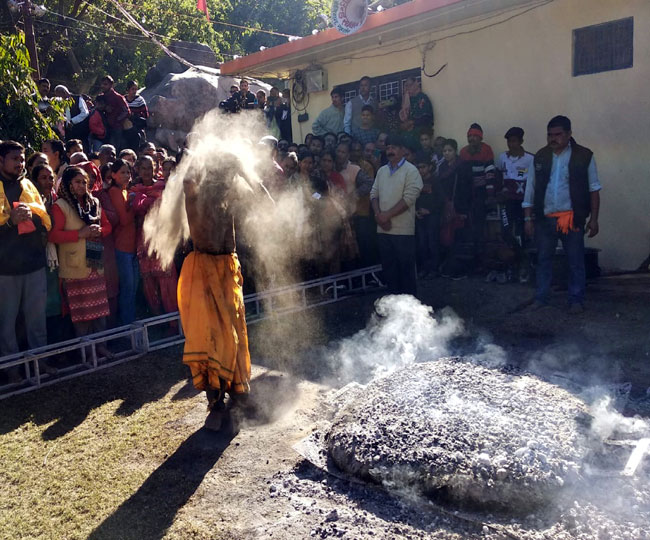 जागर के दौरान ‘सिद्धबाबा' के प्रभाव में आए शीशपाल सिंह नेगी ने अपनी पीठ पर लोहे के सांकल से प्रहार शुरू कर दिया व दहकते हुए अंगारों पर नृत्य करने लगा।