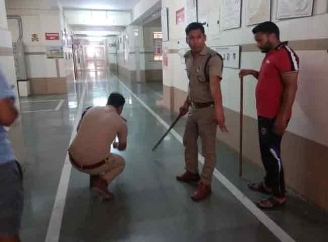 इसके बाद टीम इससे सटे कम्युनिटी मेडिसन विभाग की इमारत में पहुंची। दोपहर करीब पौने बारह बजे यहां दूसरी मंजिल पर कॉरिडोर से गुजरते वक्त रेस्क्यू टीम को गुलदार के होने का आभास हुआ, कॉरिडोर में दुर्गंध भी आ रही थी, इस पर टीम सतर्कता के साथ आगे बढ़ी। सबसे आगे कुछ कर्मचारी जाल लेकर चल रहे थे। यहां टॉयलेट के पास भीतर छिपे गुलदार से टीम का आमना-सामना हो गया। वह टीम की तरफ झपट्टा मारने को दौड़ रहा था, तभी रेस्क्यू दल में शामिल शिकारी अजहर खान ने उस पर निशाना साध दिया, जो गुलदार के गले पर लगा। इससे पहले गुलदार हमला करता, दूसरे शिकारी जॉय हुकिल ने भी निशाना साध कर गुलदार को वहीं ढेर कर दिया। गोली उसके जबड़े में लगी।