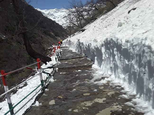 रुद्रप्रयाग के डीएम ने बताया कि पारा चढ़ने से बर्फ पिघल रही है। फिलहाल सौ श्रमिकों की मदद से बर्फ काटने और सफाई का काम किया जा रहा है। गौरीकुंड से केदारनाथ की दूरी 16 किलोमीटर है। इसमें नौ किलोमीटर मार्ग से बर्फ हटा ली गई है।