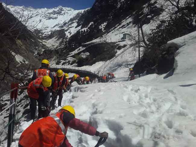उन्होंने बताया कि सोमवार से श्रमिकों की संख्या में इजाफा किया जाएगा। जल्द ही बिजली, पानी और संचार सुविधाओं को भी दुरुस्त किया जाएगा। दूसरी ओर बदरीनाथ में भी हाईवे खोलने का कार्य जारी है। सीमा सड़क संगठन की टीम सड़क से बर्फ साफ करने में जुटी है। सड़क पर जमा विशाल हिमखंडों को काटने में समय लग रहा है।
