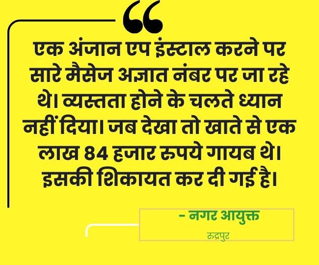 इसे इन्स्टाल करते ही सभी निजी मैसेजे अज्ञात नंबर पर फारवर्ड हो रहे हैं। इसका पता तब चल रहा है, जब अकाउंट खाली हो रहा है। अब तक नगर आयुक्त सहित अन्य लोग इसका शिकार बन चुके हैं। ऐसे में किसी अंजान एप को डाउनलोड करना खतरे से खाली नहीं है।