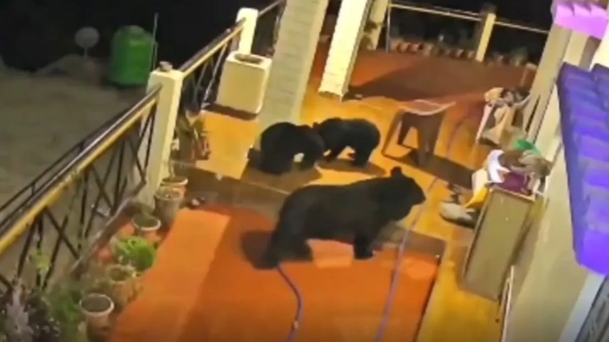 VIDEO : भालुओं का परिवार आ धमका घर के आंगन में, सीसीटीवी कैमरे में कैद हुई यह घटना