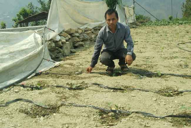 उत्तरकाशी, [शैलेंद्र गोदियाल]: जिला मुख्यालय उत्तरकाशी से नौ किमी दूर स्थित कंकराड़ी गांव के दलवीर सिंह चौहान ने जल प्रबंधन के बूते अपनी ढलानदार असिंचित भूमि को सोना उगलने वाली बना दिया। टपक खेती व माइक्रो स्प्रिंकलर और मेहनत की तकनीक से वह इस 0.75 हेक्टेयर भूमि पर पिछले 17 साल से सब्जी उत्पादन कर रहे हैं। इससे दलवीर हर वर्ष 3.5 लाख रुपये से अधिक की कमाई कर लेते हैं।