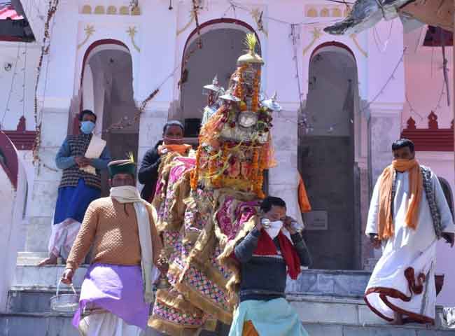 गंगा के शीतकालीन प्रवास स्थल मुखवा में तीर्थ पुरोहितों शनिवार की सुबह से ही मां गंगा की पूजा अर्चना शुरू कर दी थी। जिसके बाद पुरोहितों ने मां गंगा की मूर्ति को सजाया। डोली में बिठाया। दोपहर ठीक 12.30 बजे अभिजीत मुहूर्त पर गंगा की उत्सव डोली को लेकर पुरोहित गंगोत्री की ओर रवाना हुए। इस दौरान मुखवा गांव निवासियों सहित हर्षिल, धराली, बगोरी के ग्रामीणों ने घरों से ही मां गंगा को हाथ जोड़े और फूल चढ़ाए।